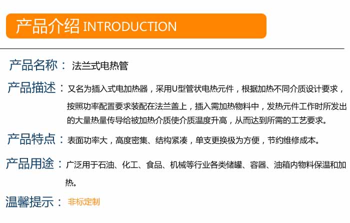 法蘭式電加熱器是由多支加熱管焊接在法蘭上集中加熱。主要用于敞開式、封閉式的溶液箱和循環(huán)系統(tǒng)中加熱用。